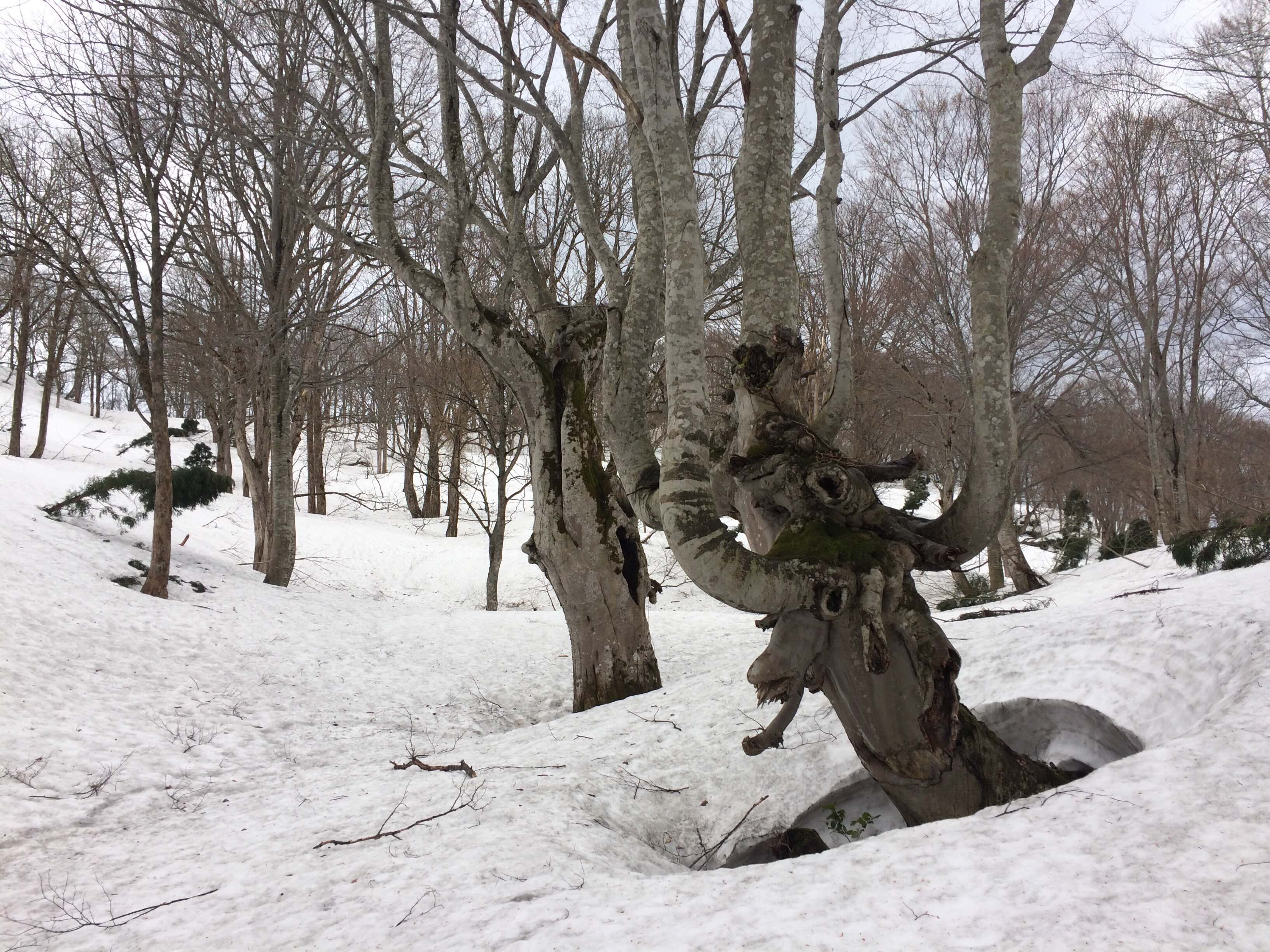 豪雪地域である長野県小谷村旧戸土集落では、「とうだい」と呼ばれるあがりこ型のブナが残雪上での台伐りによって形成され、1950年頃まで学校のストーブ薪として利用されていたことが住民への聞き取りによって明らかにされました。